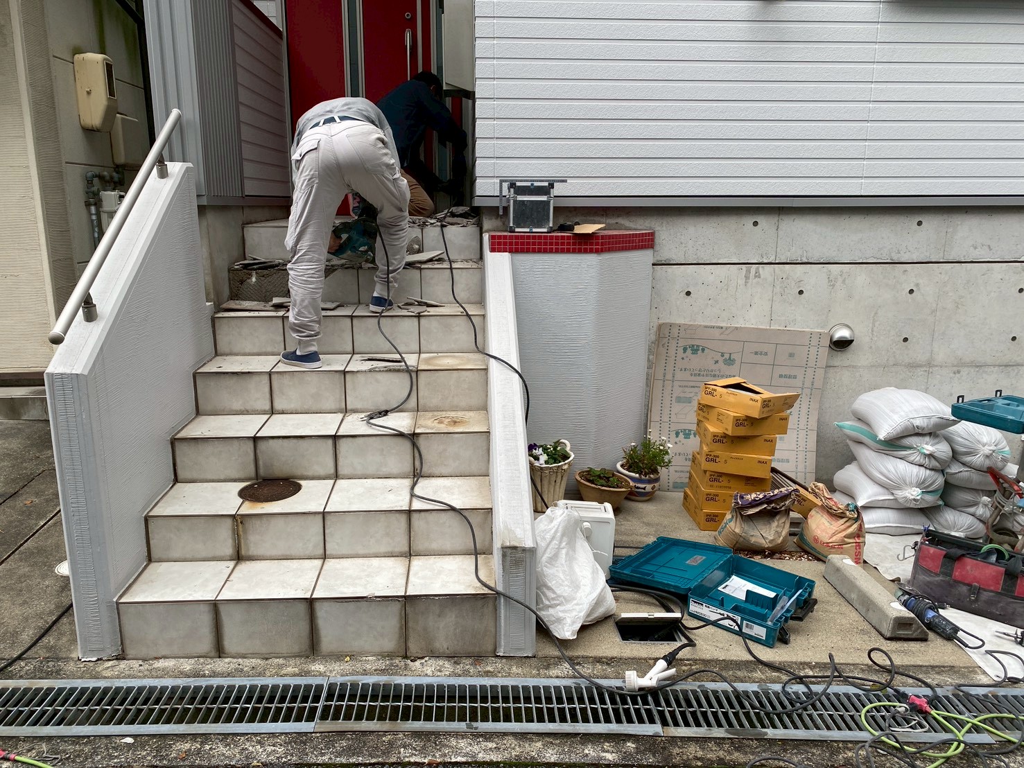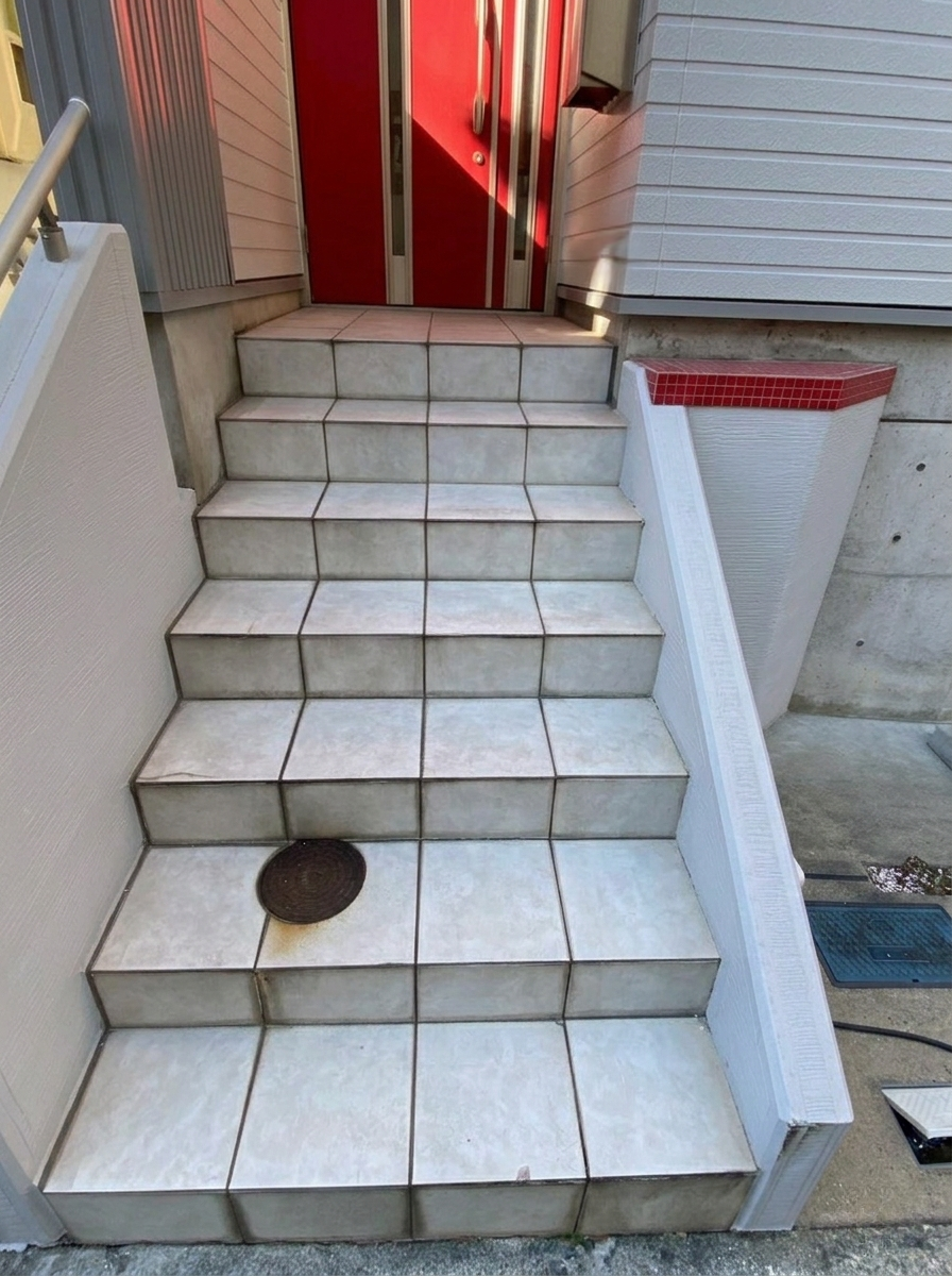 外構工事 玄関入口、階段タイル張替え工事