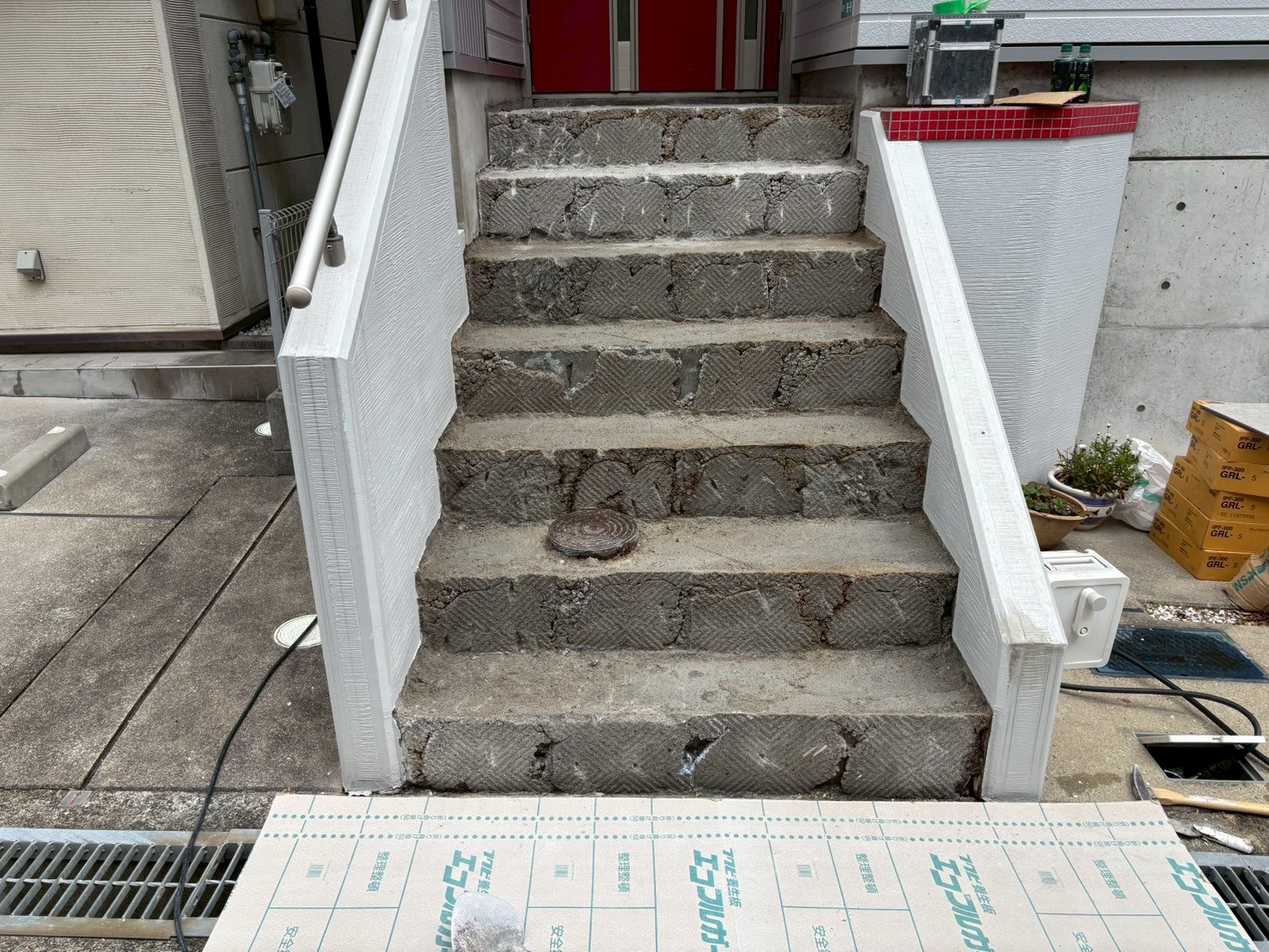 • 玄関階段リフォーム|下地補修(カチオンフィラー)から仕上げまで