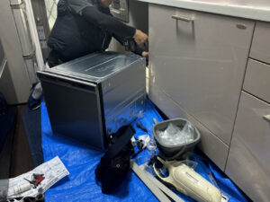 まず食洗器なんですが、排水部分が壊れてしまい、うまく水が流れず床に水が漏れだす大惨事となりました💦