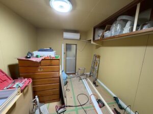 まず、お部屋の家具を移動・搬出し、工事中に他の場所が