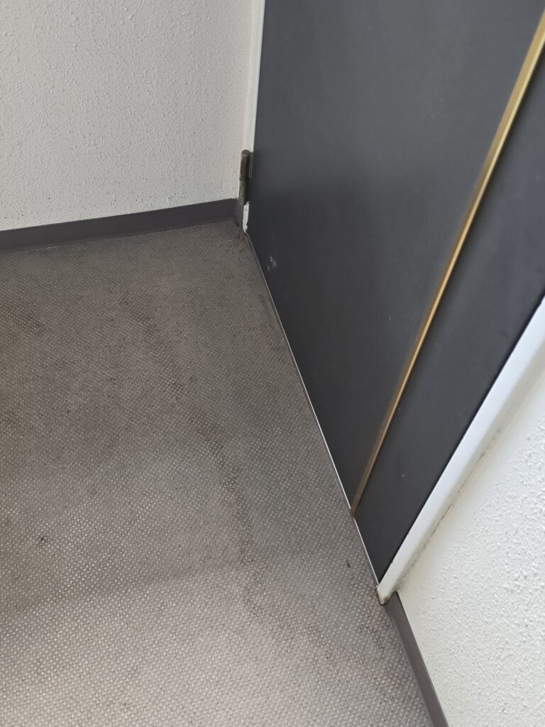 ドア付近にも水がしみ込んだような跡が広がって残っています💦