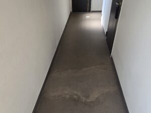 さて、今回調査依頼してくださったお客様のお話ですが、小雨の時でも1階の共有部の廊下に雨漏りが度々おこるとのことでした…💦