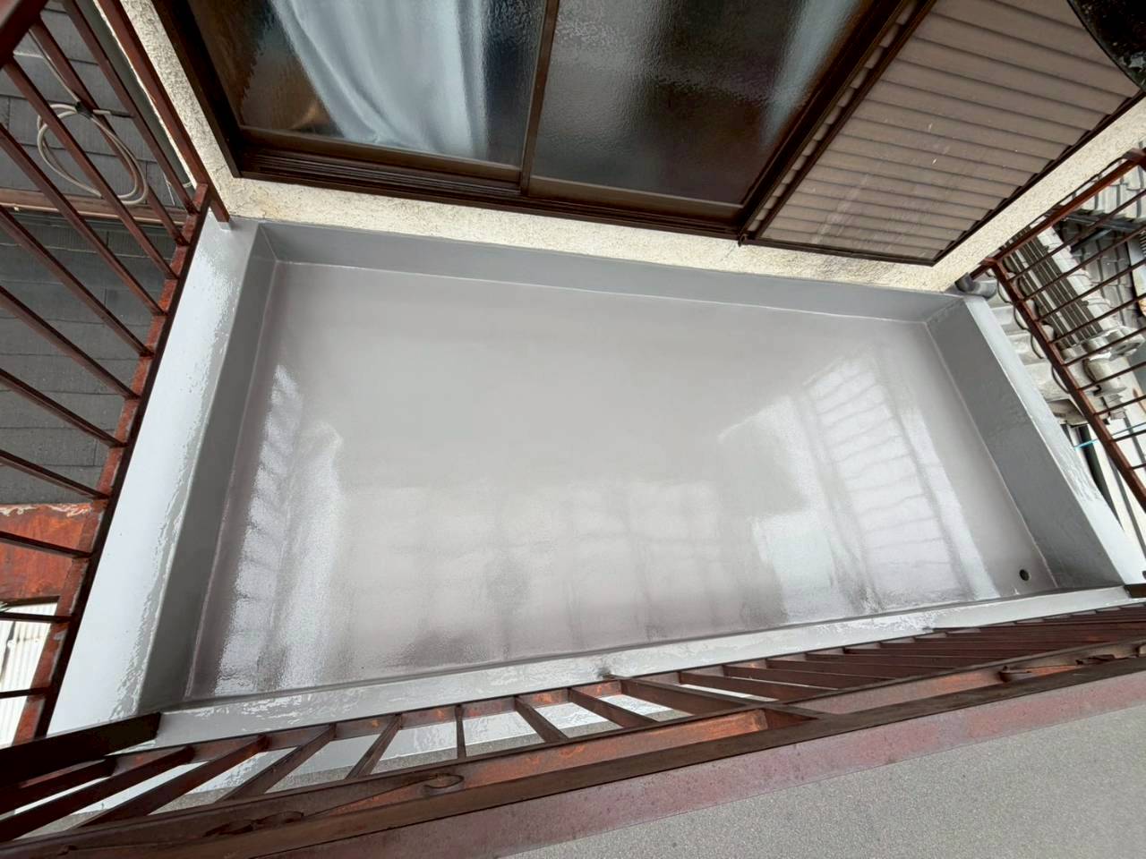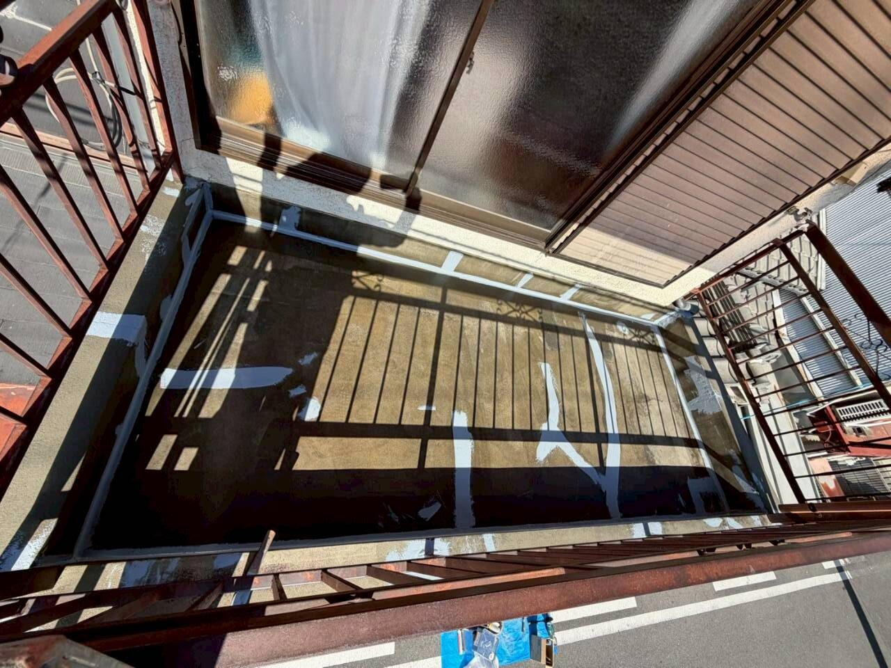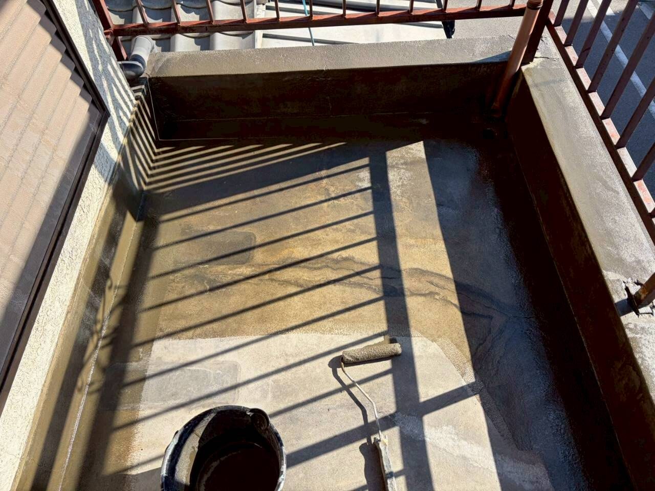 ベランダには無数のクラックや湿った状態の箇所もあり、防水機能がほぼ失われている状態でした。 特にクラックは雨漏りに直結するため気づいた時点で早めの補修・トップコート更新をおすすめします!